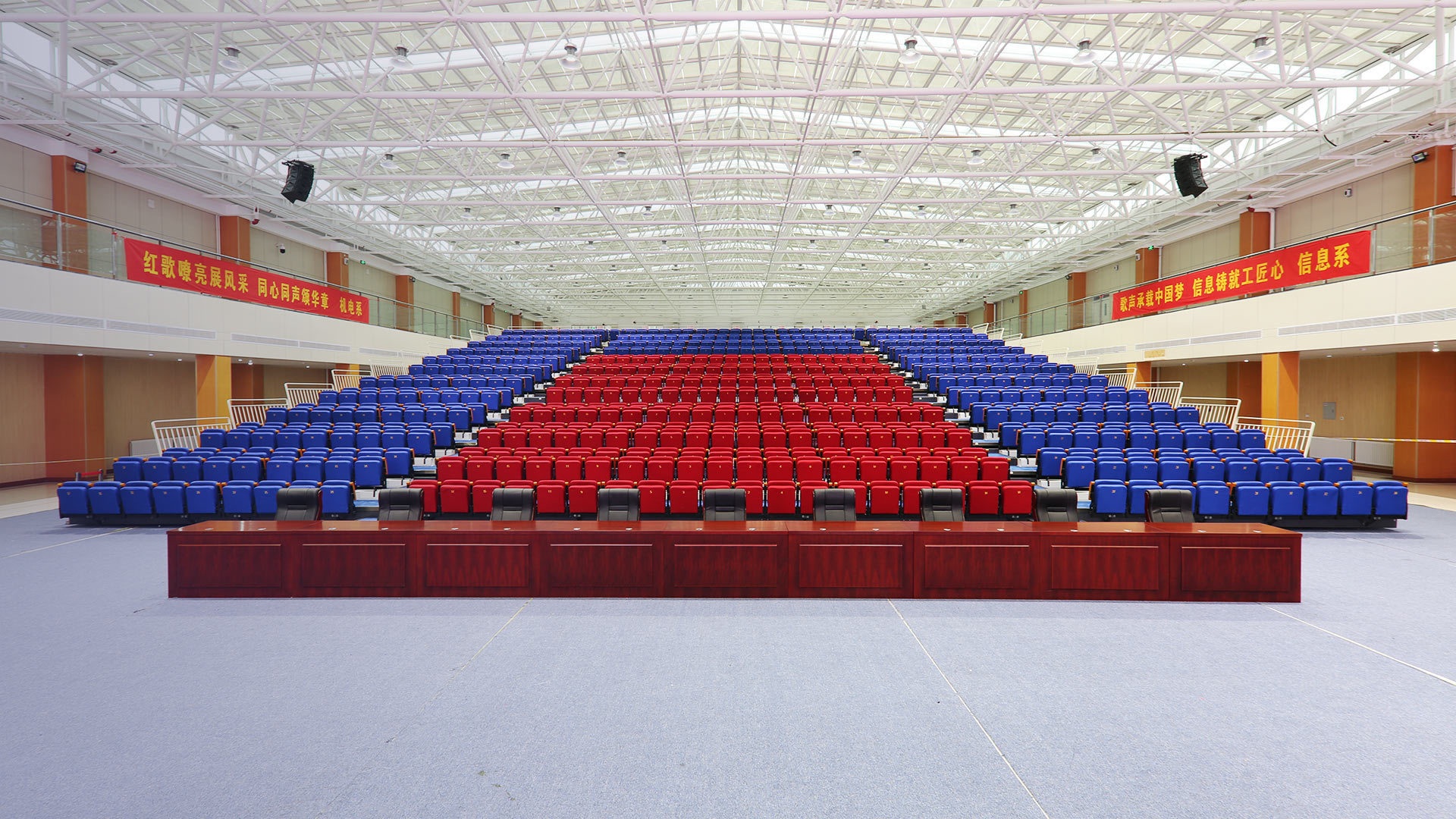 劇院座椅通常用于大型會議室,學校或政府的禮堂,大型歌舞劇院.大多數由椅座、椅背、扶手和站腳四部分構成。一般情況下站腳和扶手結為一體構成牢固安裝的扶手架。組成結構一般為鋼木結構或鋼塑結構。
